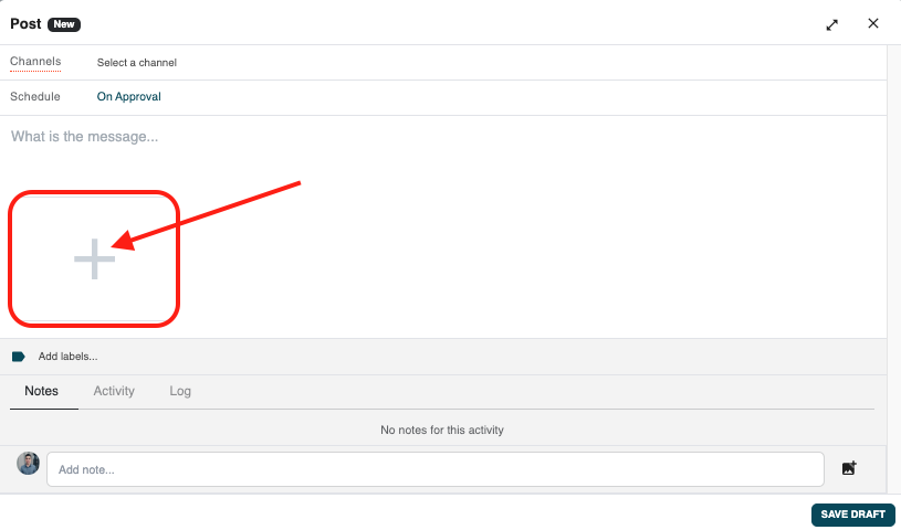 To get to the photo options, first attach an image to your post by clicking the plus icon, or by dragging a file into the media box.