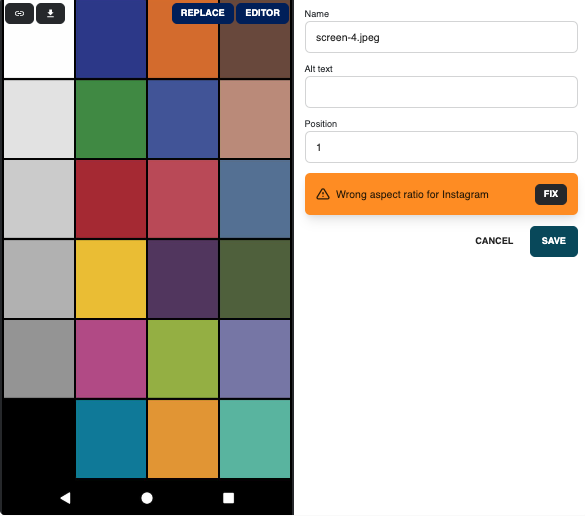 If you upload an image that doesn't fit within the parameters of a specific social platform or the file size is too large, the Social Assurance platform will flag the file and give you a notice.