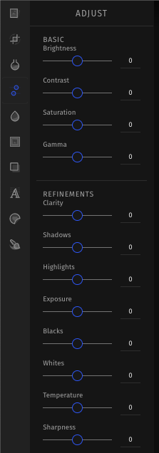 The Adjust feature allows you to adjust the image exposure and lighting. Adjustment options include: